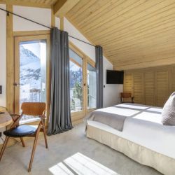 Most of the bedrooms are located on the top floor of the chalet, with one nestled alongside the cinema room on the lower ground level. Many have the option of choosing a twin or double bed confirguration - just let us know which you require when you book with us. All rooms come with hairdryers, bathroobes, slippers, luxury toiletries and benefit from daily housekeeping including a mid-week towel change.