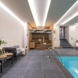 Spa area on lower ground floor with sauna, pool and relaxation area