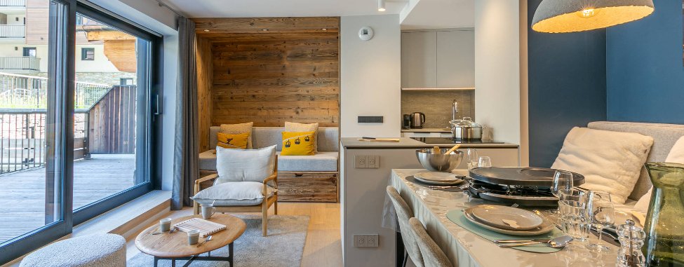 The residence offers direct access to the bottom of the Santons piste from where it is a 2-minute easy ski to the main snow front lifts and ski school meeting points.