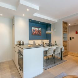 Open kitchen equipped with a dishwasher, hob, oven, microwave, large fridge, freezer, wine cellar, nespresso coffee maker, kettle, toaster, blender, soda stream and raclette.