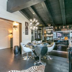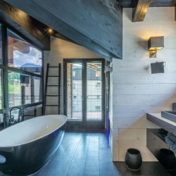 Just off the main street with its many bars, shops and restaurants. A short walk to the slopes or a couple mins to the free bus stop that connects you with the ski areas.