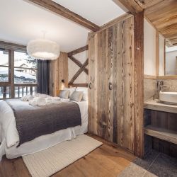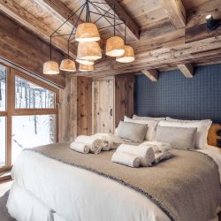This split level chalet-apartment is elegantly decorated with traditional styling and modern furnishings, creating a cosy and luxurious space with the added benefit of private sauna and jacuzzi bath. There is an open plan living area, including a fully equipped kitchen and a large dining table. The living room features plush sofas set around a roaring fire, perfect for unwinding after a long day on the slopes.