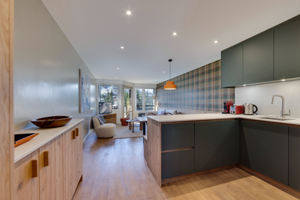 The Albaron residence is on a quiet back road and less that 5 minutes walk to the main village ski lifts or the sports centre / swimming pool. The main shops, restaurants and bars of the village are a 5-6 minute easy walk.