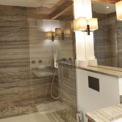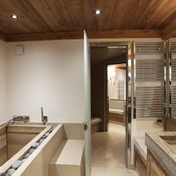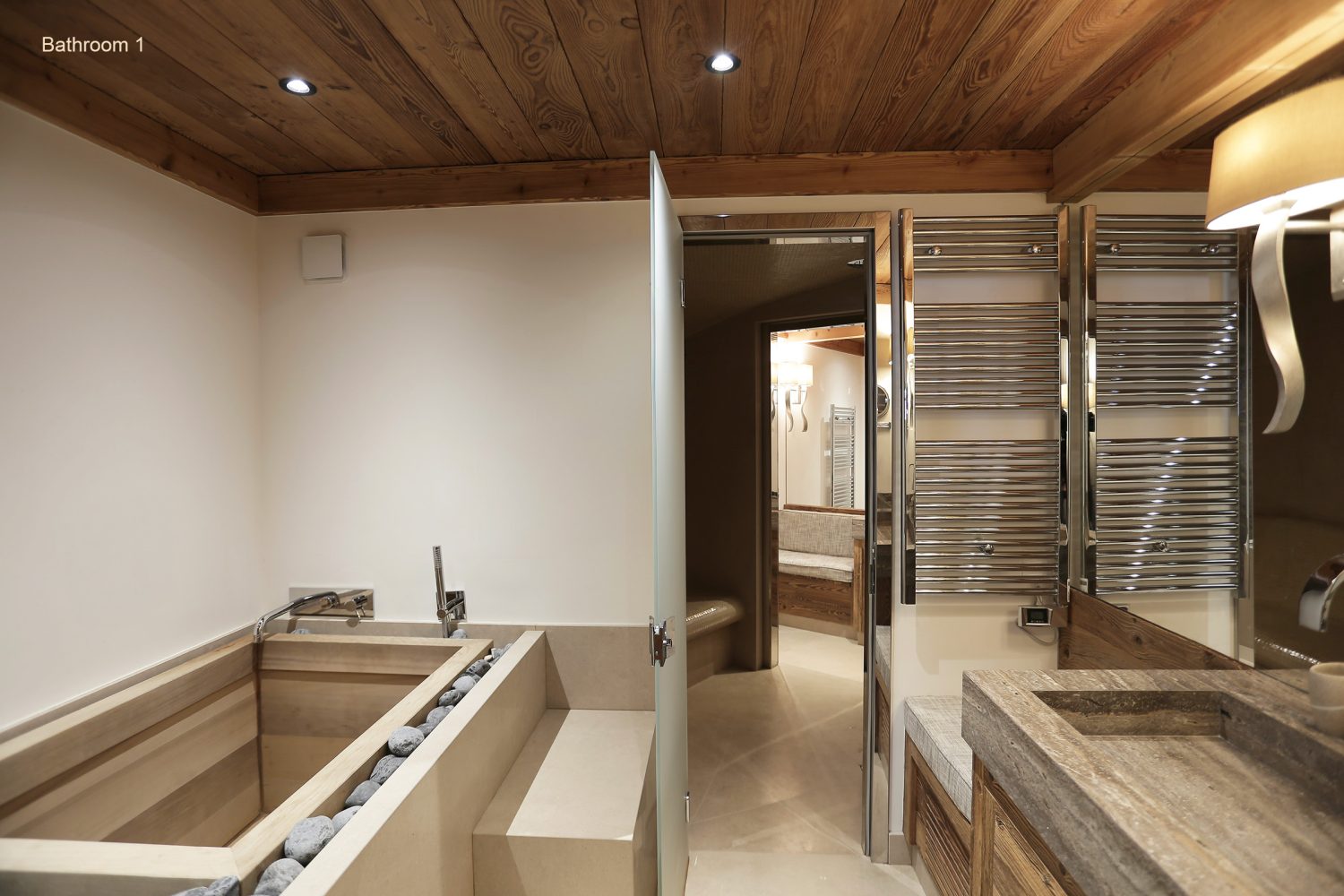 Master suite - Luxurious double room with TV, desk and chaise longue. The suite includes a WC with sink and a bathroom with Japanese soaking tub and separate shower with access to the steam room.