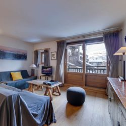 The apartment is on the second floor, facing West on one of the loveliest street in Val d’Isère.