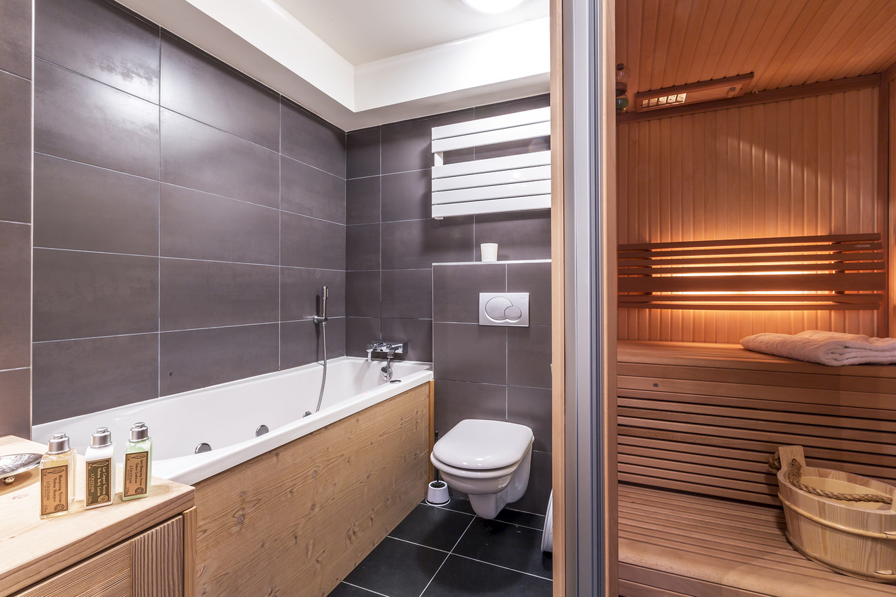 1 bathroom with toilet, sauna for 2, washing machine and tumble dryer
